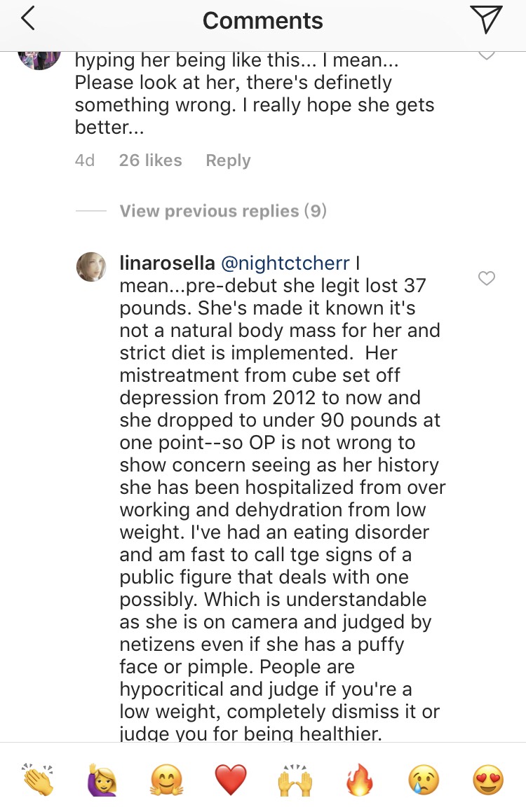 事實上,22日,泫雅一身下身失蹤的造型,腳上套著網襪的照片也引起大批網友直呼身體過瘦,並表示「看看現在的泫雅似乎發生了什麼事,我不認為他過得更好」,對此,另一名粉絲則提及泫雅從4Minute至單飛待了8年的公司說到「2012年開始在Cube娛樂被嚴格控制飲食,讓他從2012年開始就一直相當憂鬱,體重甚至直墜到不到90磅」。
