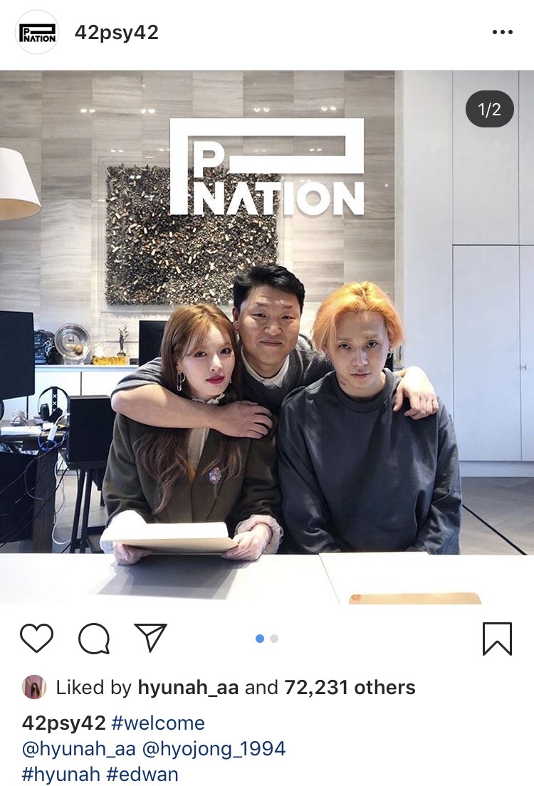 27日,因為一曲《江南大叔》爆紅的PSY,今年才剛自立門戶創立經紀公司「P Nation」,透過公司官方IG向外界宣布,泫雅和E'dawn成為第二組簽約成功的藝人,而先前則是Jessi。