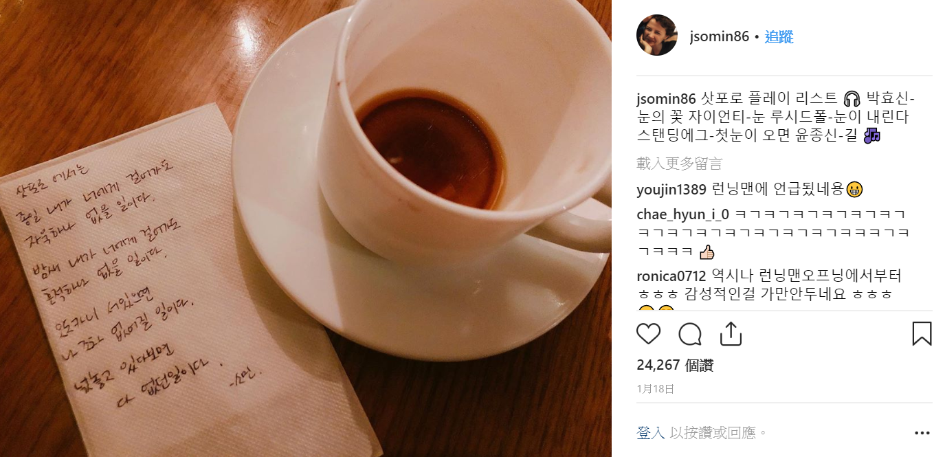 18日,全昭旻在個人IG分享前往日本札幌旅遊寫下的短詩,沒想到竟在節目錄影時被劉在錫公開朗讀,讓全昭旻害羞到跑出鏡頭。情詩中寫到「在札幌就算我終日向你走去也未留蹤影」、「就像我徹夜向你走去也不留足跡」、「惘然佇立,我也消失在即」、「呆呆地放空,都是未曾有過的事罷了」。