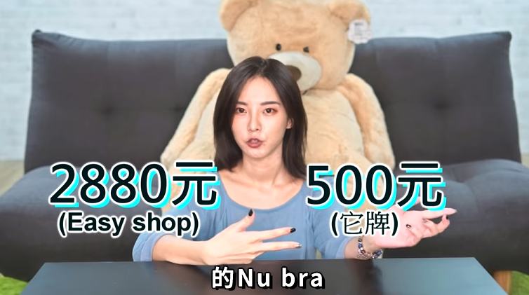 奎丁近日發布影片,其中她表示自己是Nu bra愛用戶,她也認為Nu bra是個好東西,更搞笑表示:「穿透明肩帶的女生在街上我真的是見一個打一個啦」,笑翻網友。後來她拿出了自己平常用價格2880元的與500元的他牌做評比,喜歡吃滷肉飯的她,發現自己的Nu bra真的很貴,還現場撕下說道:「早知道就去吃滷肉飯了」,不過後來她又自己黏回去,「我們要保持優雅喔」!