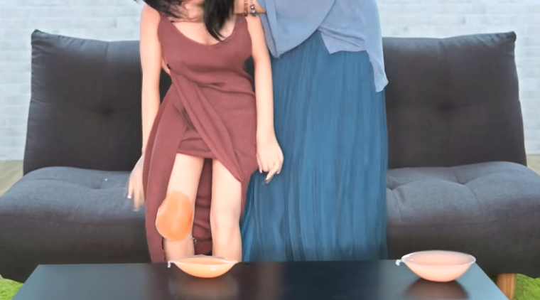 這次的實測中奎丁將兩個不同品牌的Nu bra貼在假人的膝蓋上,在不停的反覆黏貼之後,2880的元Nu bra竟在第23次就宣告不治,完全失去黏性,反倒是500元的Nu bra撐到了第80次左右。不過第二項評比中,奎丁將兩牌Nu bra貼在冰可樂上,看看會「出汗」的情況下,抓胸力如何。後來實驗結果出爐,由2880元大勝,最後一比一結束測試。