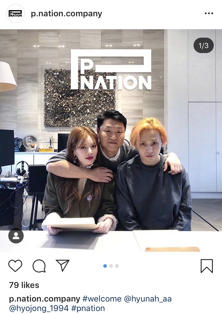 歌手Psy離開經紀公司YG娛樂後,就自立門戶創立P Nation,先是簽下Jessie,接著也在官方IG分享確定合作泫雅和E'dawn的合照。28日,泫雅和E'dawn飛往泰國曼谷度假,兩人也在簽約後首度直播,其中泫雅緊張說到「今天要跟你們宣布好消息真的非常緊張,我覺得變得很生疏」,並透露消息一出後,收到來自各方的祝福。