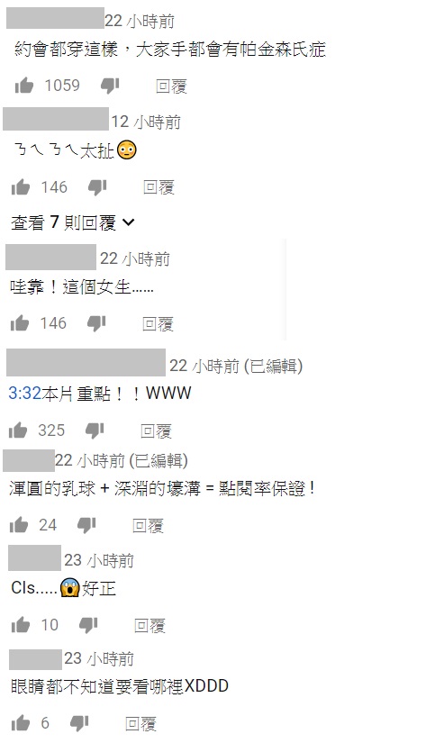 而這驚濤駭浪的一跳,也讓網友們看了是為之瘋狂,直呼「約會都穿這樣,大家手都會有帕金森氏症」「ㄋㄟㄋㄟ太扯」「3:32本片重點!!」「渾圓的X球 + 深淵的壕溝 = 點閱率保證 !」,也有網有害羞的表示「眼睛都不知道要看哪裡」。
