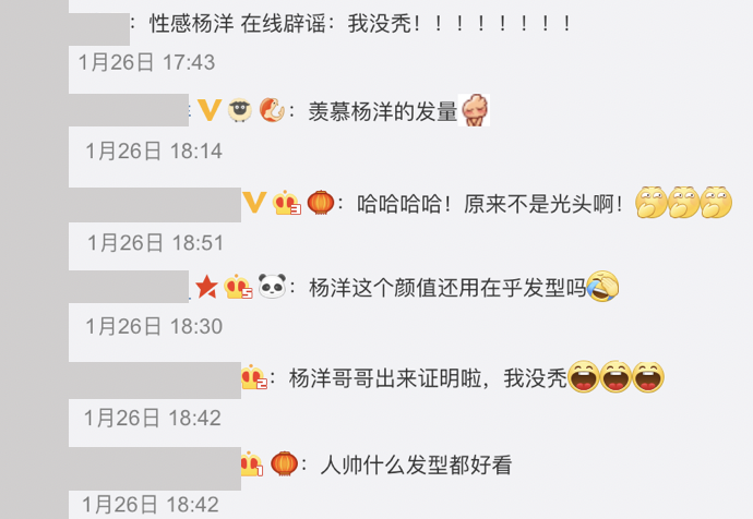 近日,有網友捕捉到楊洋沒戴帽子的私照,照片中他的髮量依然很茂密,而瀏海的樣子也和去年年底時的造型相似,也讓網友鬆了一口氣,紛紛留言:「性感楊洋 在線闢謠:我沒禿!」、「楊洋哥哥出來證明啦,我沒禿」、「羨慕楊洋的髮量」、「哈哈哈哈!原來不是光頭啊!」、「楊洋這個顏值還用在乎髮型嗎」、「人帥什麼髮型都好看」
