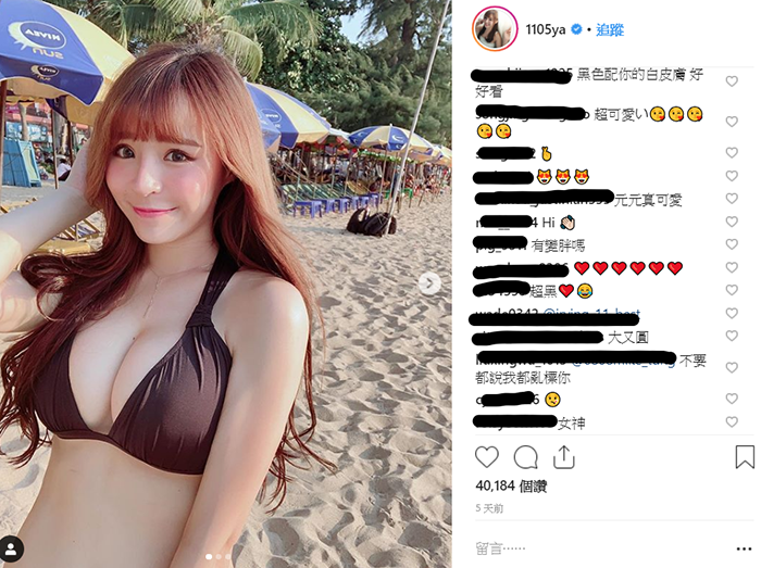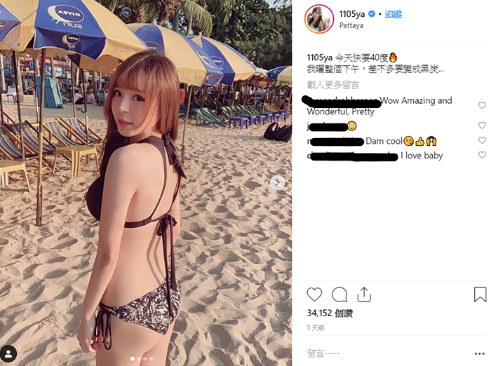最近元元和好友一同到泰國芭達雅旅遊,還在IG上打卡分享,元元和閨蜜Mia(陳甯亞)一到了泰國的沙灘就換上了比基尼,好身材一覽無遺,透過元元分享的照片可以看見,當時她將及胸的微卷長髮放下,身上穿著黑色泳衣,白皙的肌膚以及傲人的E罩杯展現出自信美,當時對著鏡頭元元也擺出招牌的甜蜜微笑,而網友害羞放大看之後似乎還能看到「南半球」,而比基尼背後的蝴蝶結綁帶,更帶出了可愛的氛圍,美麗畫面也讓網友心都融化了。