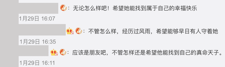 而近期有網友就拍到Selina與一名高瘦的男子一起逛街,男生舉止也相當貼心,還幫Selina背了包包,疑似兩人的戀情遭曝光,消息一出後也火速被工作人員打臉,原來只是在錄製《女兒們的戀愛》,雖然有些粉絲感到很可惜不是真正的新戀情,但大部分網友都還是希望Selina過的快樂就好,紛紛留言:「無論怎麼樣吧!希望她能找到屬於自己的幸福快樂」、「經歷過風雨,希望能夠早日有人守著她」、「不管怎樣還是希望他能找到自己的真命天子」