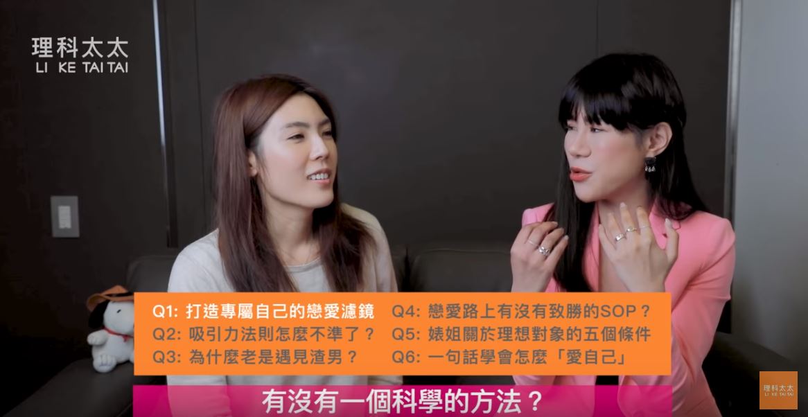 知識型Youtuber「理科太太」是近期在Youtube界崛起的一顆新星,從去年七月開設頻道至今已有93萬的訂閱人數,儘管近期對於其身分背景、專業知識領域的質疑和討論相當多,但仍不妨礙其人氣的飆漲,而且在她影片中出現的名人更是不在話下,近日她也邀請到了講話超犀利、幽默的丹妮婊姐,兩人一起在影片中談論「愛情」這件事。