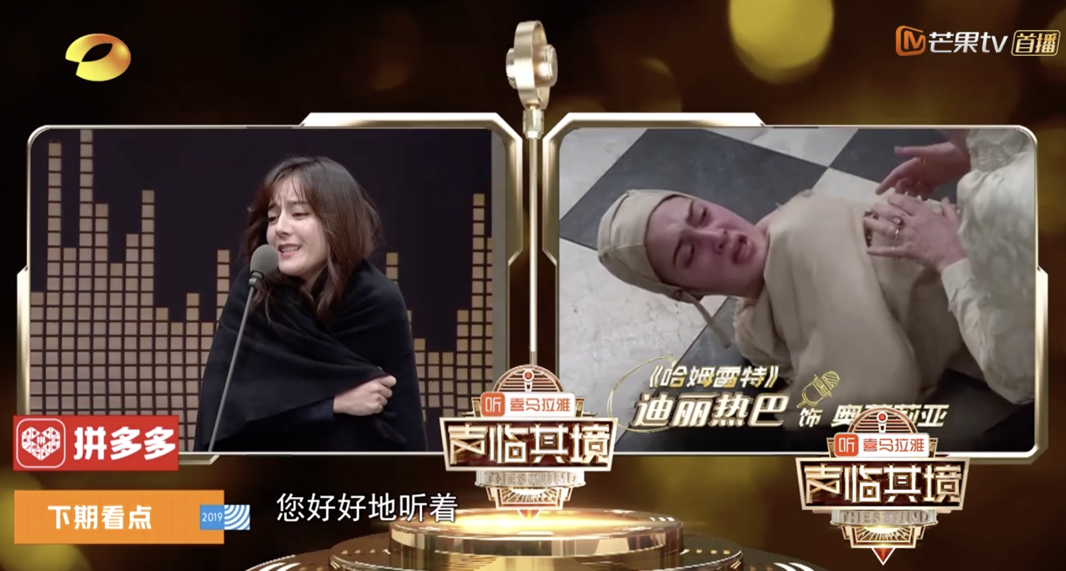 節目《聲臨其境》是一檔原創聲音魅力競演秀,節目每期都會邀請包括演員、配音演員等在內的四位嘉賓同台進行聲音的競賽,通過台詞、配音實力和互動搭檔的比拼,最終由現場500名觀眾選出當期的「聲音之王」進入年度聲音大秀 。在最新一集預告中,節目邀請迪麗熱巴作為嘉賓,而迪麗熱巴選擇了《哈姆雷特》作為挑戰,也獲得好評。