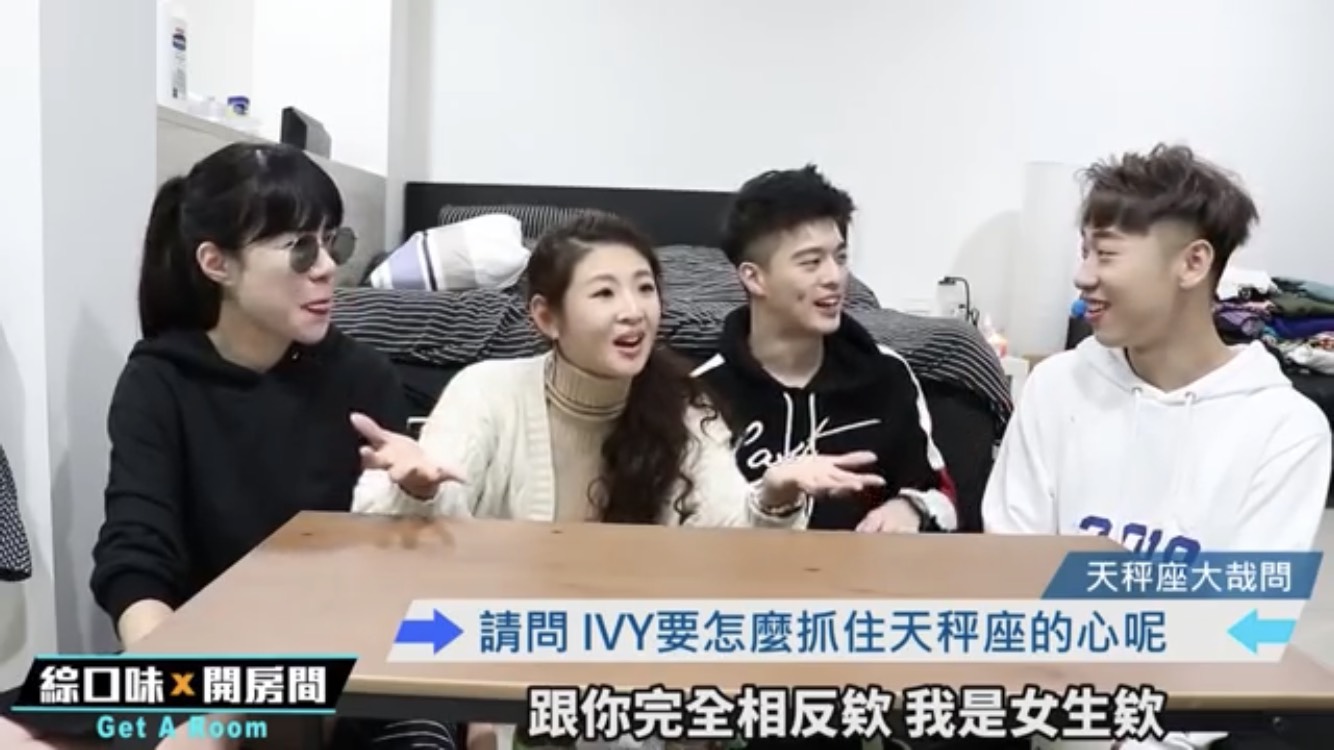 不過Ivy也剖析身為天秤座的她,都會怕丟臉,如果要擄獲對方的心要怎麼下手,她表示一定會找成功機率最高的人下手,她更說如果下定決心要對對方下手,基本上都是本身對方就是喜歡他們,天秤不會去挑戰一個不愛他的人,她更說出震驚全場的話:「我人生中沒有喜歡過 不喜歡我人」,小賴聽到便問:「所以你出生到現在都是被別人追?」,她也直白回答:「我是女生欸」,言外之意就是覺得身為女生被追很正常。