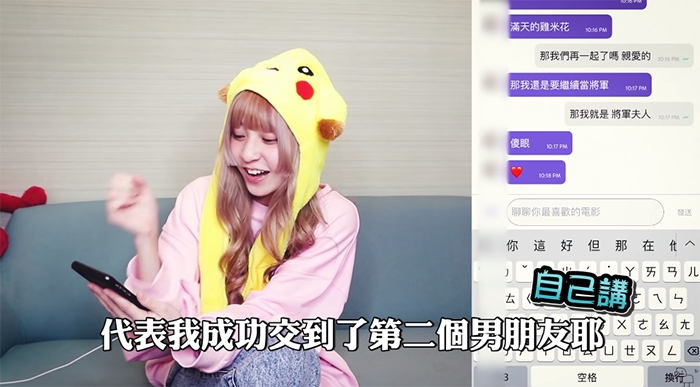 本本首先找了一位不認識自己的男生聊天,在聊了兩句之後,她則直接切入正題問道:「那你要當我男朋友嗎?」,沒想到對方後來便爽快答應:「那不錯耶,現在就不是單身了」,也讓本本開心宣布交到了第一個男朋友!不過為了交到下一個男友,本本決定先跟這個人分手,她也自嘲根本是「變相渣女」!