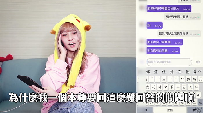 沒想到之後本本一連串遇到多位不相信她就是本尊的人,網友也紛紛打上:「換你自己的照片啊」、「我不相信我的人生會有這種事」,後來本本也解釋不清,只好直接詢問「要不要當我男朋友」,不過後來在她的甜言蜜語之下,對方也打上愛心,順利交到第二個男友!