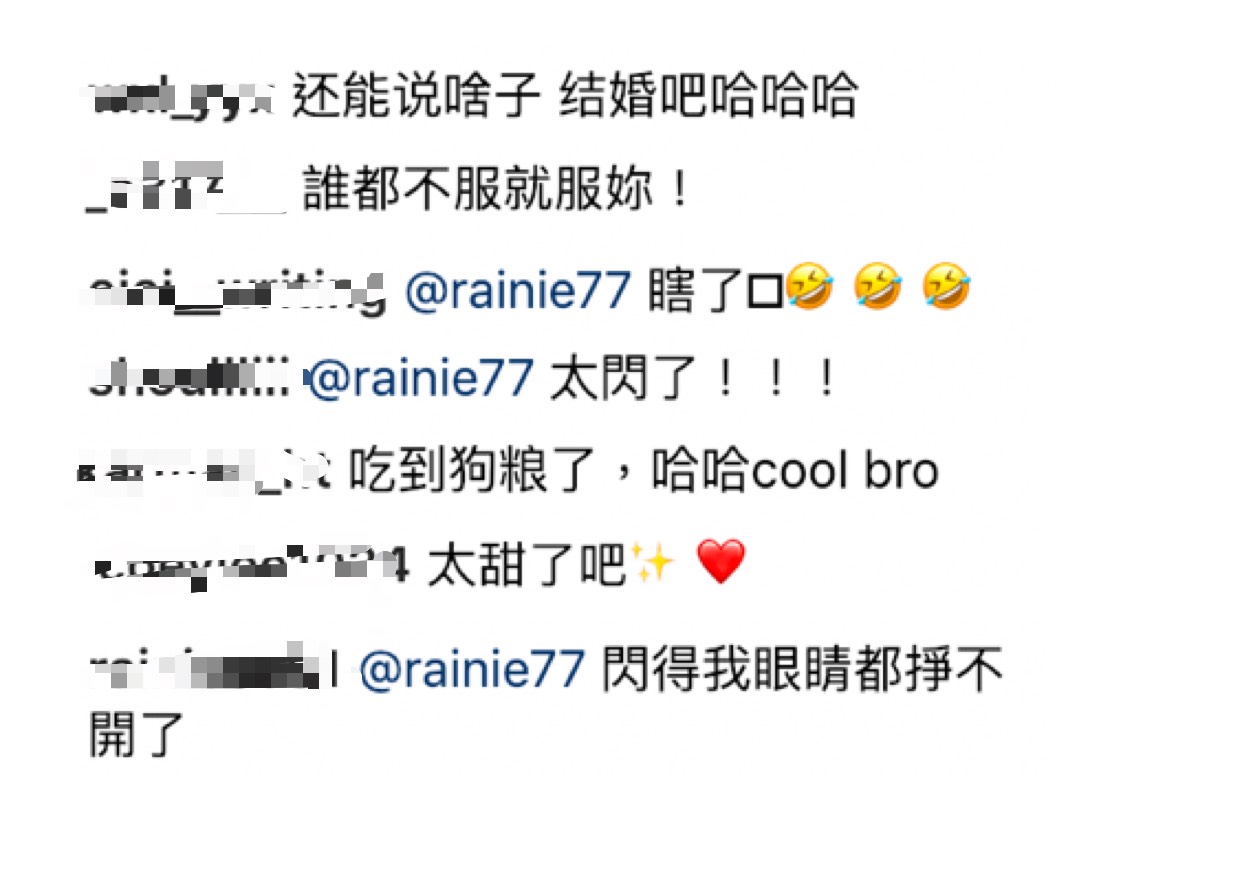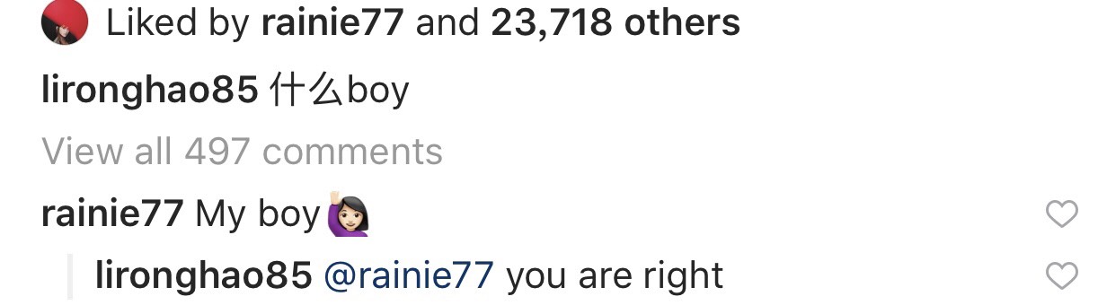 昨日晚間,李榮浩在IG上發出一張半身的照片,並寫下:「什麼boy」,而不到一個小時的時間後,女友楊丞琳也在下方回覆:「My boy」,此留言也瞬間獲得近三千個讚數,而李榮浩也回應:「you are right」,看見兩人放閃後,網友也紛紛留言表示:「好甜好幸福」、「墨鏡!墨鏡」、「太甜了吧」、「還能說啥 結婚吧哈哈哈」、「誰都不服就服妳!」、「吃到狗糧了哈哈」、「閃得我眼睛都睜不開了」