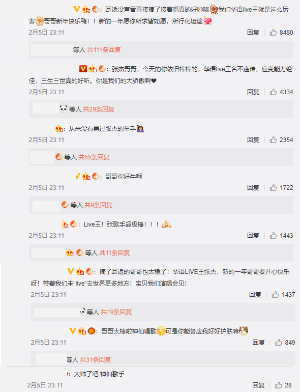 貼文發布後,也引起許多粉絲留言:「耳返沒聲音直接摘了接著唱真的好帥哦,我們華語live王就是這麼厲害」、「華語live王名不虛傳,應變能力絕佳,三生三世真的好聽」、「哥哥太棒啦神仙唱歌」、「依舊展現了超強的live實力」、「我們華語live王不是吹的」、「神仙歌手」。