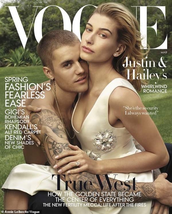 24 歲加拿大人氣歌手小賈斯汀(Justin Bieber)在去年 9 月被狗仔直擊在紐約與 22 歲星二代名模海莉鮑德溫(Hailey Baldwin)登記結婚,且謠傳即將於這個月底舉行婚禮。小賈斯汀和海莉鮑德溫在去年底為美國版《Vogue》拍攝的全新雜誌寫真終於曝光,由知名女攝影師 Annie Leibovitz 為這一對新婚夫妻掌鏡。