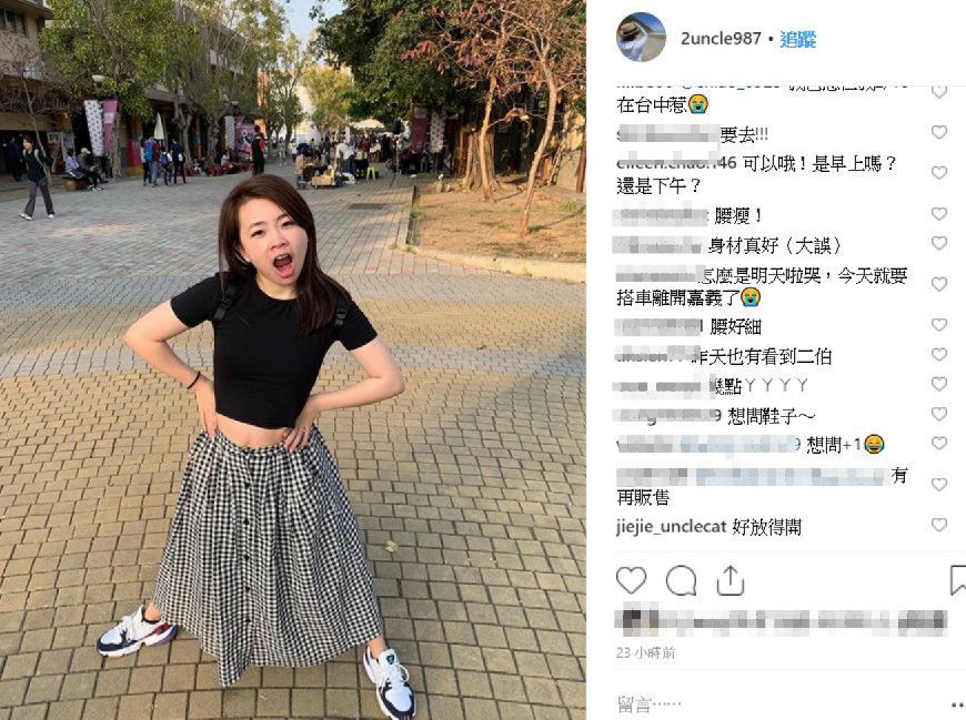 阿嘎和二伯高中就談戀愛,面對家人反對最終分手長達13年時間,沒想到再次交往僅僅半年時間就修成正果,甚至在去年7月產下兒子蔡桃貴,不過已經是媽媽的二伯卻擁有令人稱羨的身材,日前在IG曬出的全身照中,身穿短版上衣的二伯大方露出纖細腰圍,引起大批粉絲熱議「二伯的腰真的不合理」、「腰瘦啊」、「身材真好」。