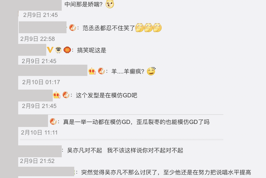 因為節目《中國有嘻哈》和《中國新說唱》的關係,掀起了一股饒舌說唱的熱潮,而近日有網友翻出過去蔡徐坤在參與團體活動時,現場即興說唱的片段,而此片段曝光後,網友也紛紛說道:「中間那是嬌喘?」、「范丞丞都忍不住笑了」、「搞笑呢這是」、「羊....羊癲瘋?」、「為啥他老是在模仿別人,一點自己的freestyle都沒有?反感」、「真是一舉一動都在模仿GD,拐瓜劣棗的也能模仿GD了嗎」、「這個髮型是在模仿GD吧」,除了評論他饒舌的功力外,網友們也對他模仿GD感到反感。