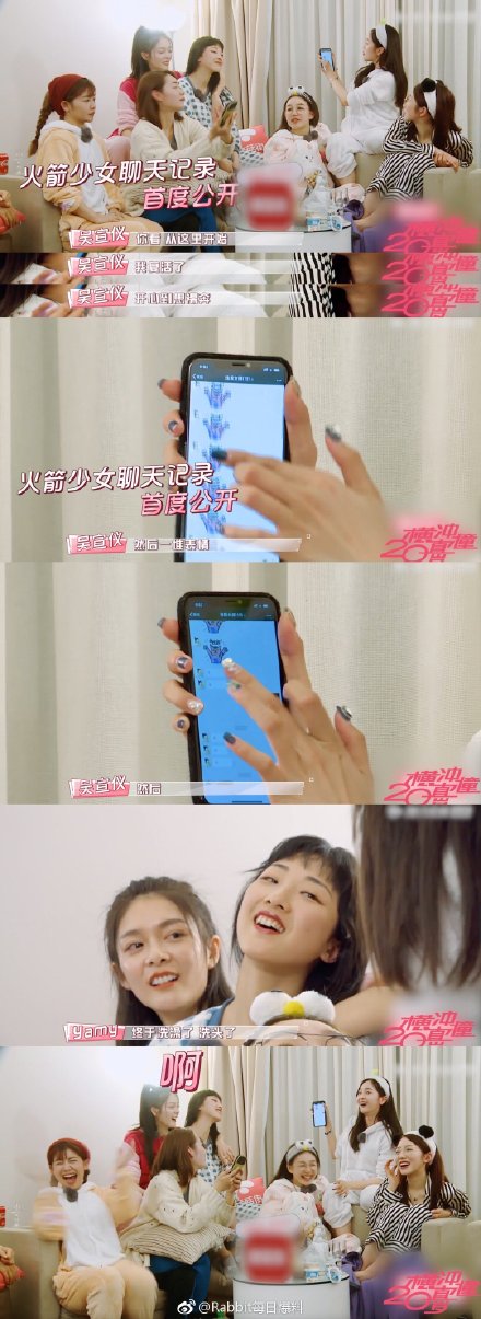 在最新一集中,11人在飯店房間中開始進行「睡衣吐槽大會」,每個團員都換上了自己平時穿著的睡衣,而輪到吳宣儀時,她要吐槽Yamy,當時Yamy在回到飯店之前發燒身體不舒服,室友李紫婷也很貼心的讓她先去盥洗,結果在洗澡時Yamy突然嗨起來,吳宣儀便拿出手機向鏡頭秀出她們的群組,Yamy說道:「我復活了,開心的想裸奔」,甚至不停的使用貼圖洗版,讓成員們都哭笑不得。