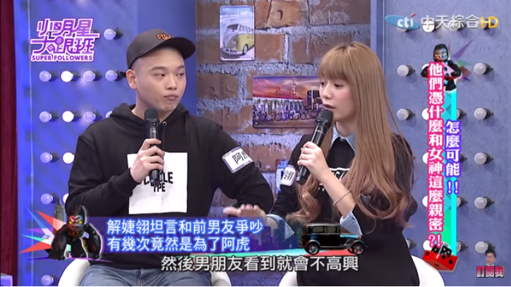 「宅男女神」解婕翎和阿虎同是《瘋神無雙》的固定班底,兩人相識多年,感情相當好卻一直都只是朋友關係。不過阿虎先前多次在節目中坦承,自己是真的喜歡對方,日前解婕翎更在《小明星大跟班》中坦言,自己心裡有阿虎,甚至好幾次為了阿虎和男友吵架。