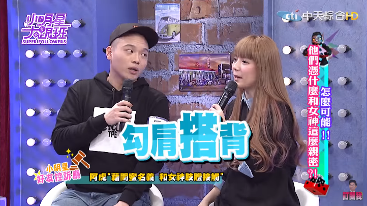 阿虎和婕翎私底下的互動相當親密,兩人常常勾肩搭背,甚至阿虎還會摟著婕翎的腰。但婕翎解釋,是因為兩人感情真的太好了,「真的很像兄弟,就是Buddy Buddy」,所以儘管阿虎跟她肢體接觸她也覺得是男生對男生。
