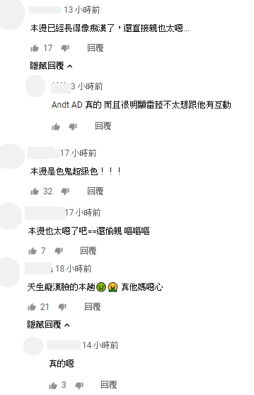 網友看見後,也紛紛留言:「天生癡漢臉的本燙」、「真的噁」、「本燙也太噁了吧==還偷親 嘔嘔嘔」、「本燙是色鬼超級色!!」、「本燙已經長得像痴漢了,還直接親也太噁...」,不過其實蕾菈也在留言處打上:「其實是我在偷吃他們三人豆腐」,這次合作也十分愉快。
