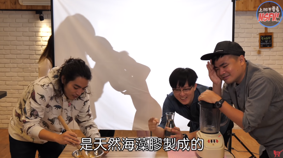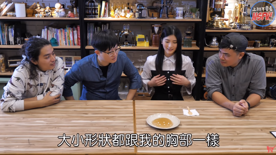 後來他們也用剛剛製好的碗模做出愛玉,本庄鈴則害羞表示:「大小形狀都跟我的胸部一樣」,更親自餵給蔡哥、小歐、阿傑吃,最後麻希還親自上手鑑定本庄鈴的胸部,並直說她的胸部真的很有彈性。