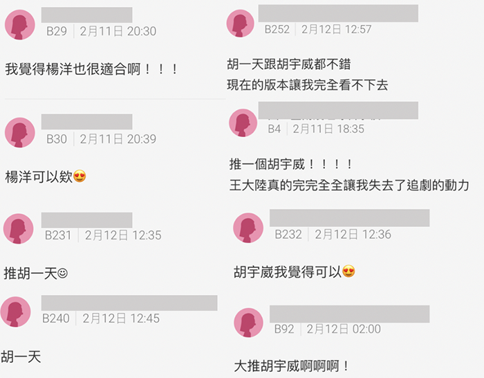 圖片來源/Dcard(左:楊洋 / 中:胡宇威 / 右:胡一天)
