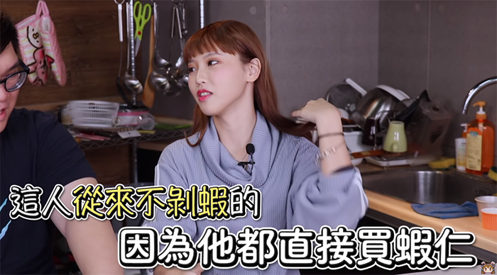這次影片中兩人一起開箱剝蝦神器、玉米脫粒器及手搖充電器,在談到剝蝦時,咪妃也透露九妹從來不剝蝦,「因為他都直接買蝦仁」,讓阿晋笑回:「聰明,我以後也絕對買蝦仁」,不過後來兩人實測結束,還是認為用手剝蝦比用神器更實際,也比較不會麻煩。至於另外兩項物品,兩人認為玉米脫粒器很方便,手搖充電器則是完全沒用。