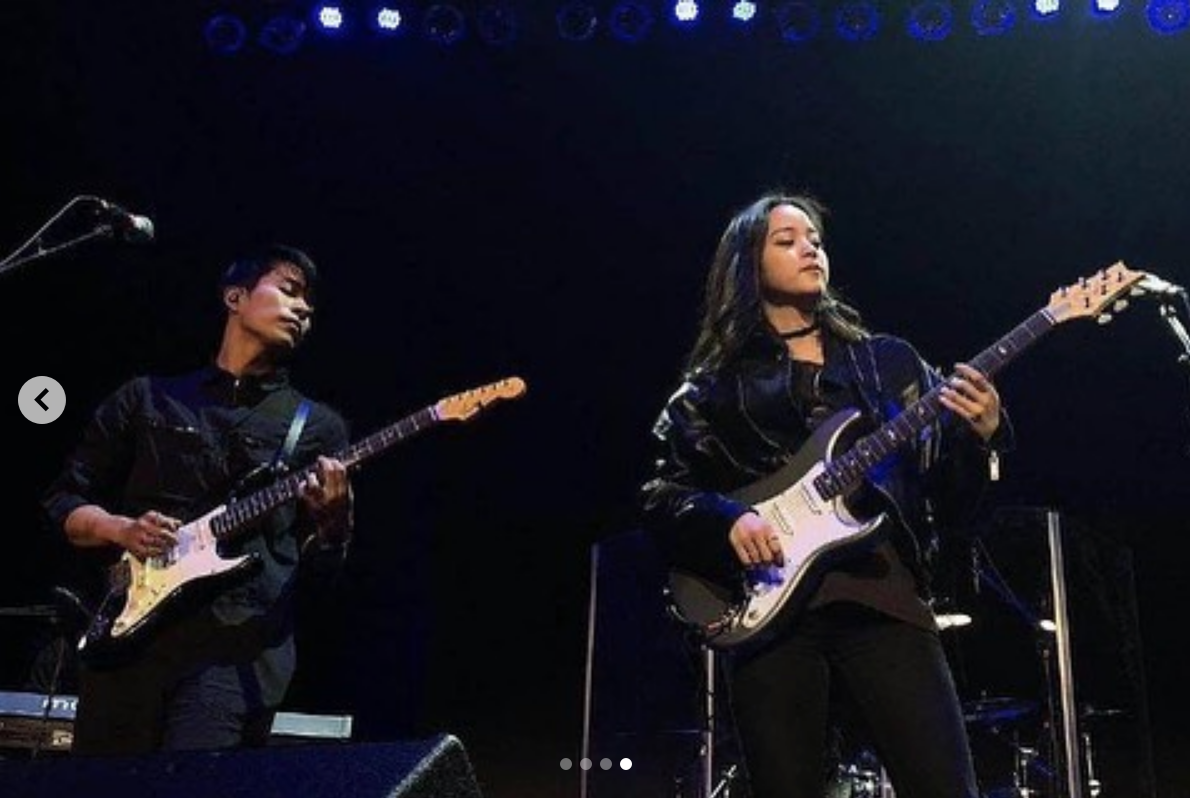 現年18歲的歐陽娜娜,因為從小看著爸媽和姐姐闖蕩演藝圈,15歲那年向寇蒂斯音樂學院提出休學,回台專心經營演藝事業。但就算如此,她也沒忘了最愛的音樂,日前化身為Rocker,受邀到美國常春藤盟校春晚演出,但照片曝光後,網友卻發現為她伴奏的,竟然是「天團」的吉他手!