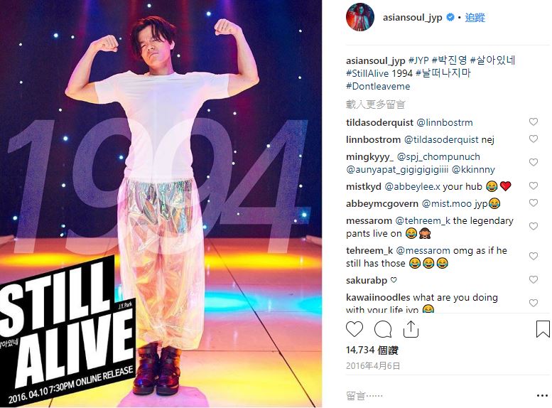 然而有更多網友想起經紀公司JYP娛樂社長朴軫永,過去身為唱跳歌手時,曾經以「塑膠牛仔褲」亮相雜誌的封面照。事實上,現年47歲的朴軫永一手培養出不少爆紅團體包括GOT7、TWICE、Miss A等,而早在1994年,朴軫永是以唱跳歌手身分亮相,他獨到的服裝風格一直是外界的注目焦點,當時雜誌以標題《我的歌比泰森的拳頭更強》採訪他,封面照中的「塑膠牛仔褲」,內裡僅穿著丁字褲,風格十分大膽甚至到現今仍然相當「時尚」。