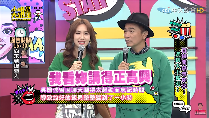 沒想到聊著聊著太起勁,一看手機的時間已經7點整了,整個人瞬間驚醒!而當時她的助理就站在門口卻有沒有提醒她時間,她問對方「為什麼沒有叫我!我沒有注意到時間!」沒想到助理卻說:「我看妳講得正高興。」結果她抵達餐廳時已經8點了!