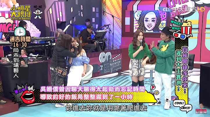 Sandy整整遲到了1個小時,老闆、製作人全在餐廳裡等她,進去的時候幾乎是用跪著爬進去,進去後Sandy跪著跟所有人道歉,直到現在回想起來都讓Sandy直說:「真的很恐怖!」而吳宗憲也忍不住說:「助理的問題也很多啦!」