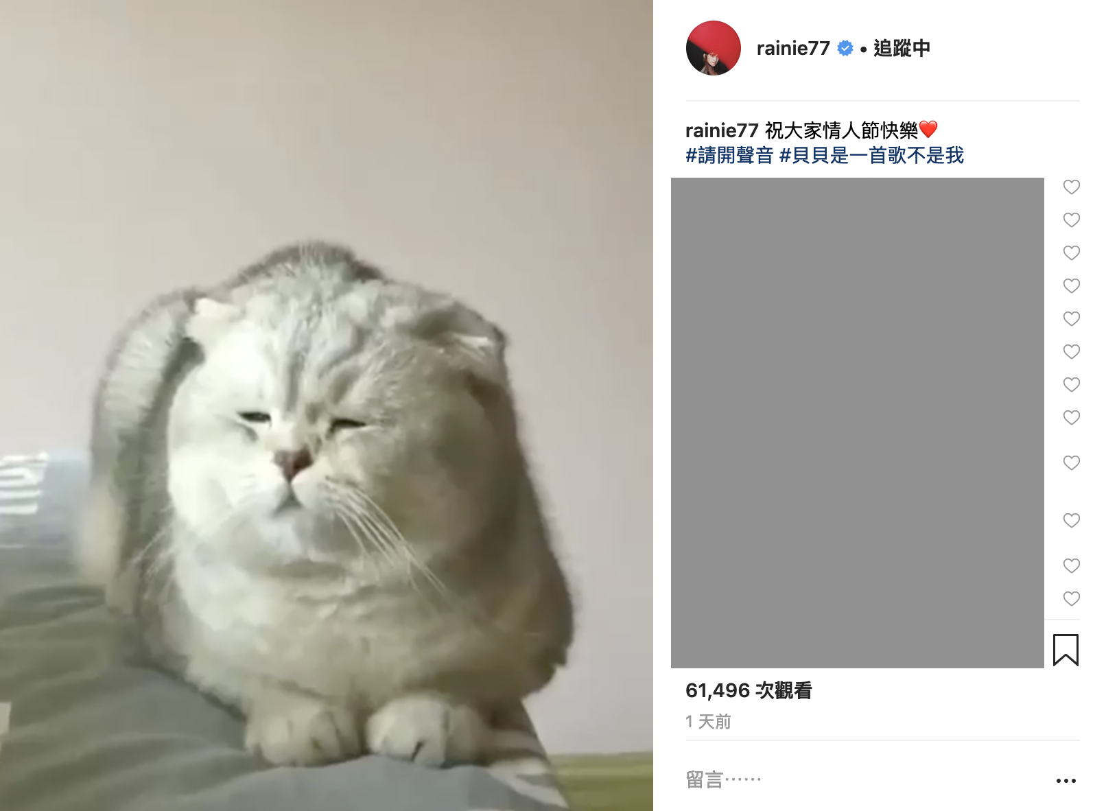 兩人鮮少在社群平台上放閃,這次楊丞琳在情人節時,發出一則神似李榮浩的貓咪,如此低調又有趣的示愛,也讓網友們笑翻。