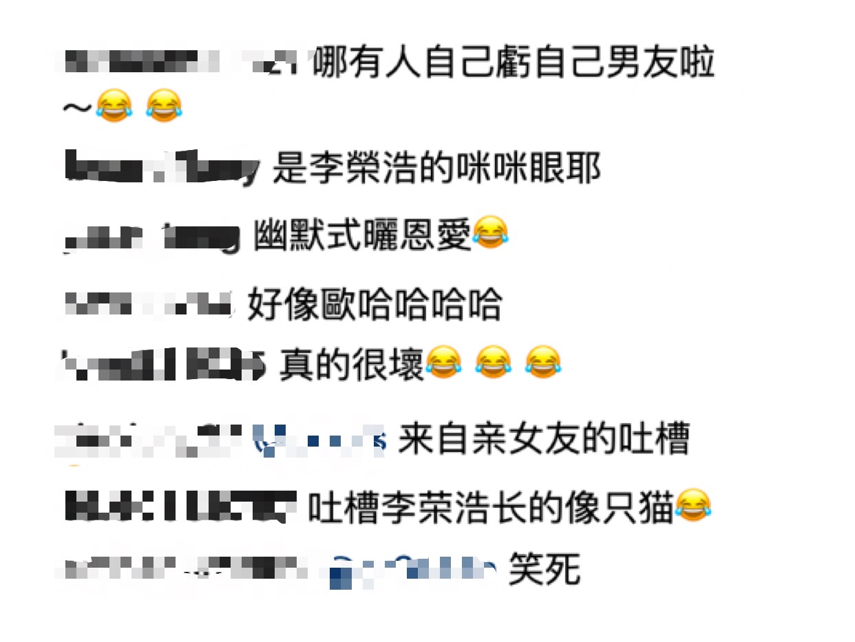 而過去李榮浩時常被說撞臉貓、狗等小動物,他本人也在專訪中提到很常在新聞上看到自己撞臉狗,更直呼:「大家的這個審美觀真的是很難捉摸啊」,曾經有網友在臉書上發出撞臉李榮浩的萌犬,該則貼文在不到一天的時間內,就有近一萬次的分享數,人氣相當的驚人,這次來自女友親自的吐槽,也引起網友們熱烈討論。
