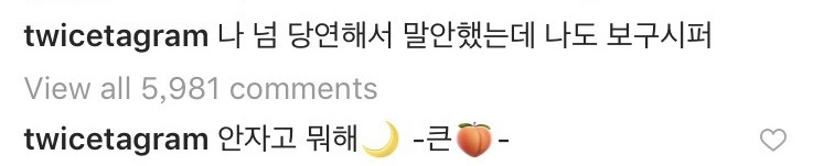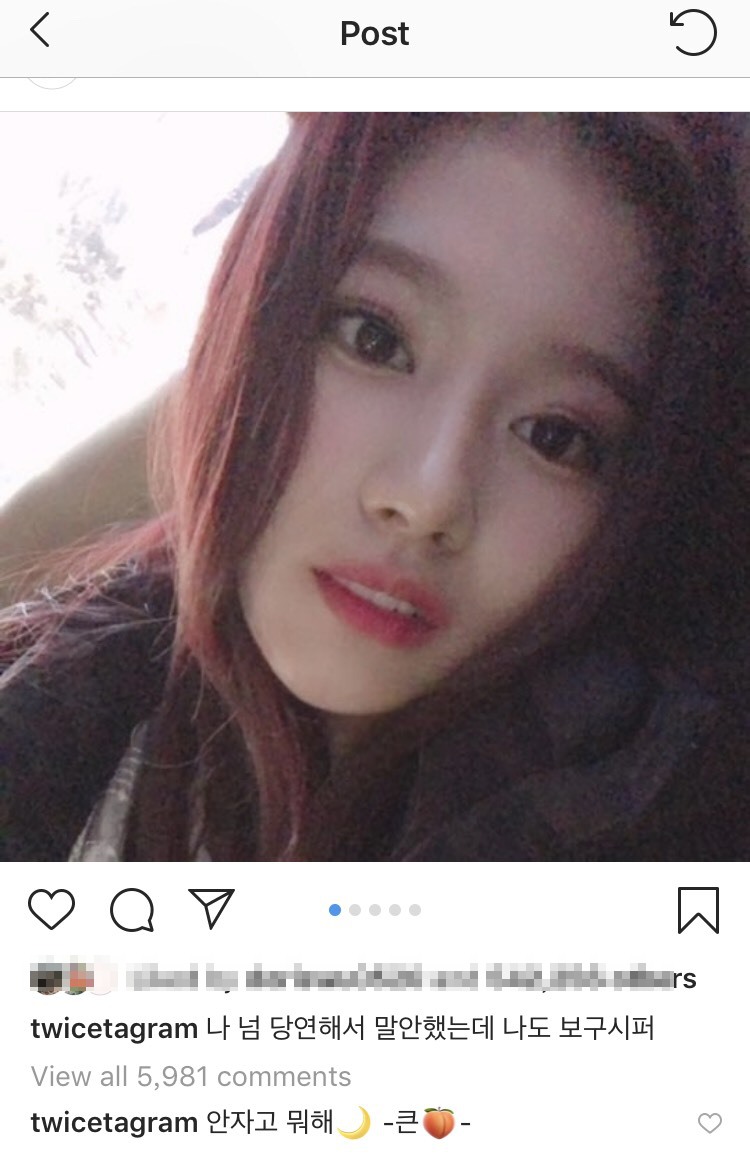 面對Sana深夜突然發文表白粉絲,成員娜璉也以圖案「桃子」暗示自己的身分,同時在貼文底下暖心安慰「早點睡吧」並附上一個月亮的貼圖,及時安撫Sana的心情,該則貼文也引起大批粉絲共鳴並紛紛回應「沒有sana人生無意義」、「我好想念TWICE」,另也有粉絲希望Sana早點睡並表示「照顧好自己」。