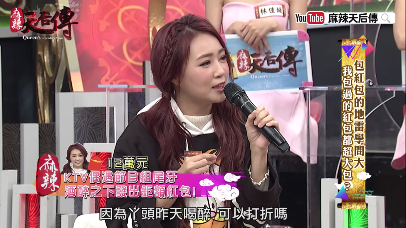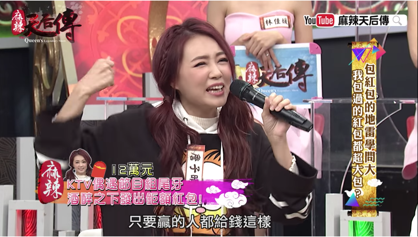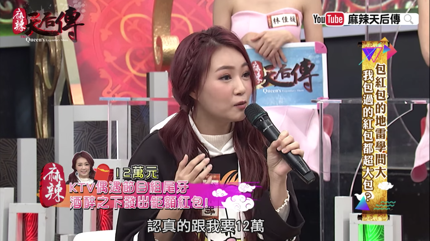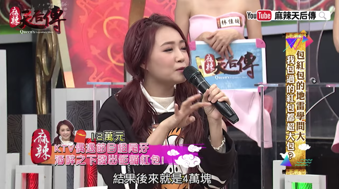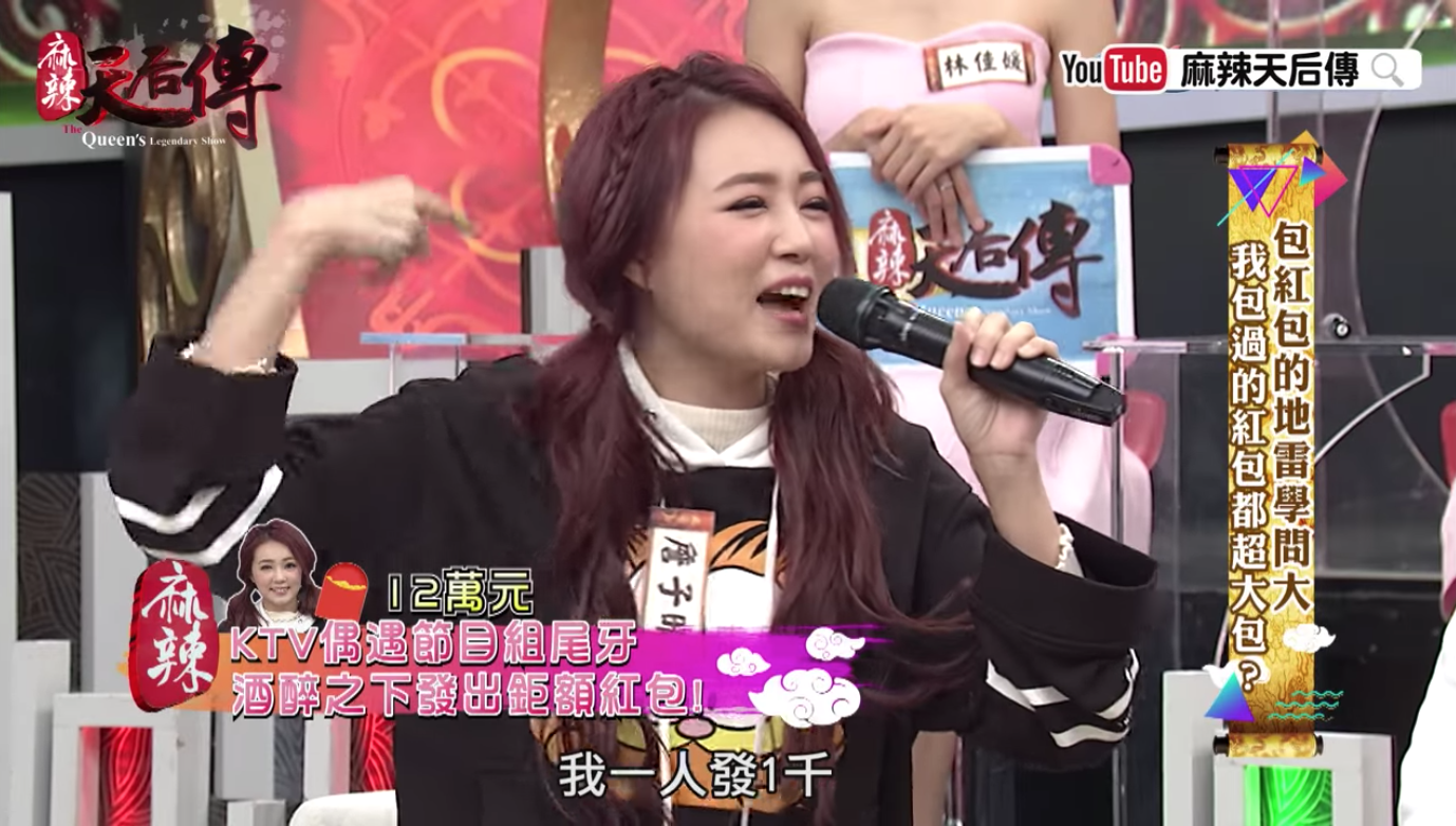 ㄚ頭在《麻辣天后傳》「包紅包的地雷學問大 我包過的紅包都超大包」單元中,談到某年參加的一場尾牙,當時她已經在台上包了不少紅包,沒想到結束後跟朋友去唱歌,竟在KTV巧遇對方「續攤」,還一次3個節目在那邊辦部門尾牙。當時她因為已經在自己的包廂喝HIGH了,巧遇第一個製作人被拉進包廂後,霸氣的向員工喊話:「誰今天沒有拿到紅包的,我一人發一千!」結果所有員工一湧而上,她也將手中的鈔票全部發完,「我也不懂為什麼那天要帶那麼多錢?」