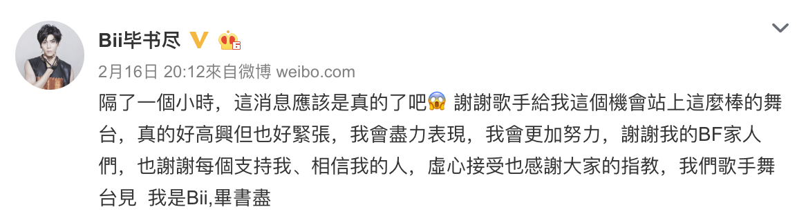 官方公布畢書盡將成為踢館選手後,引發正負兩極的評價,因為過去畢書盡歌曲《你在ㄍㄧㄥ什麼?》曾被爆出抄襲韓團「CNBLUE」,當時網友也紛紛在MV下方評論,引起軒然大波。這次登上歌手,有網友憤怒的說道:「抄襲別人音樂的人也可以上歌手了?真的是優秀呢」、「請問 抄襲也能上節目嗎?」、「抄襲也能上歌手了喔」,但也有一部分的網友留言為他打氣鼓勵:「支持畢書盡,歌手舞台等你」、「Bii唱歌真的很好聽」、「加油」