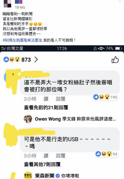 不過林俊傑的這段話卻引起熱烈討論,有網友在臉書爆廢公社表示:「我以為他風評一直都很好耶~沒想到有這段黑歷史~~」網友們也紛紛直說:「這不是弄大一堆女粉絲肚子然後簽唱會被打的那位嗎?」、「他不是行走的USB嗎」、「還以為他是完美男,嚇到吃手手」、「要不是他很賺錢 新聞早就炸開了吧」。不過也有粉絲認為還是喜歡林俊傑的歌:「人品是他私下的事情,這種事都你情我願的,早就聽過風評不少,但是沒真的相處到,就只有當事人最明白。不管有沒有,都不影響我想聽歌,因為人品跟欣賞才華,對我來說是兩碼事。」