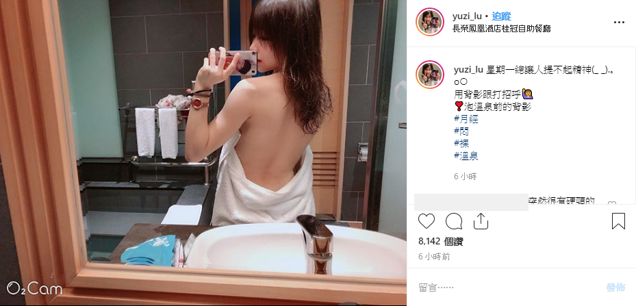 路路今(18)日在IG中分享一張讓人血脈噴張的性感照,她也打上:「星期一總讓人提不起精神,用背影跟打招呼」,只見照片中的她在鏡子前,一手拉著浴巾,一手則用手機拍下鏡中的自己,而這張照片中,最吸睛的也就是她一絲不掛的背部,原來她的浴巾微微下垂,讓她露出一大片雪白肌膚,還隱約能看見性感腰窩,火辣的模樣讓粉絲看見直接暴動。