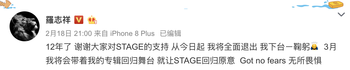 掰了12年的心血!「羅志祥」宣布退出後 秒曝「新品牌名稱」:讓STAGE「回歸原意」