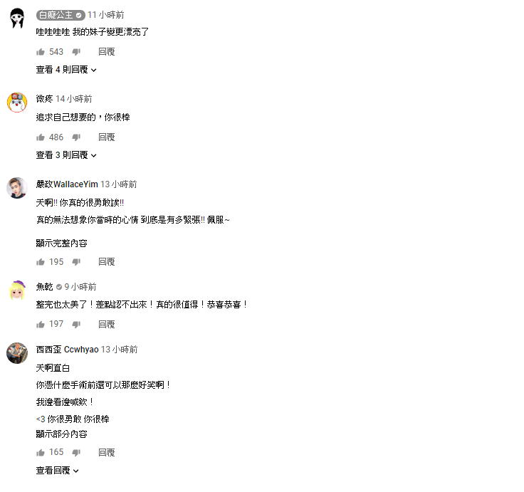 這次超直白公開自己手術的全經過,許多網紅好友也在下方留言支持她,就連白癡公主都表示:「哇哇哇哇 我的妹子變更漂亮了」,魚乾也留言說道:「整完也太美了!差點認不出來!真的很值得!恭喜恭喜!」,更有大票粉絲都稱讚她真的變超漂亮,也大讚她真的很勇敢!