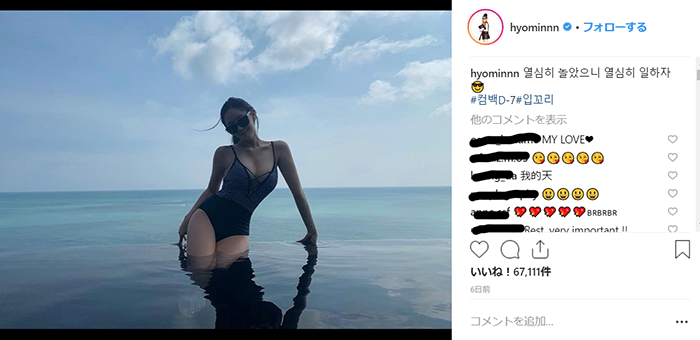 雖然孝敏如今已經離開女團T-ara,T-ara的成員們也都各自各奔東西,令當初喜愛T-ara的粉絲相當不捨,不過如今粉絲看到孝敏仍以個人身分持續努力中,也讓大家看見她的努力,粉絲們也紛紛在IG上留言大讚孝敏「愛妳!太辣了!」、「我的天也太美」,也期待今後孝敏的表現。