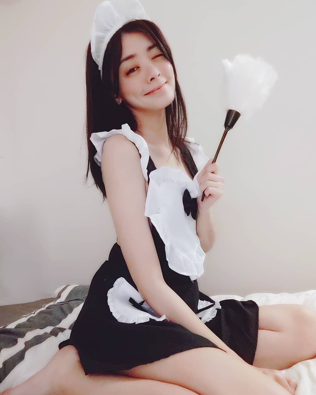 近日她的風格越走越性感,更曬出多張「俏皮女僕照」,性感模樣讓網友鼻血全噴光。她透露最近開始玩起cosplay,俏皮直喊:「先從最入門的女傭開始。」可以從照片中看到她身穿黑白色系的女僕裝,手上拿著除塵棒,穿著激短短裙的她,白嫩美腿大方秀出,坐在床上,裙子只蓋住重點部位,辣度破表。