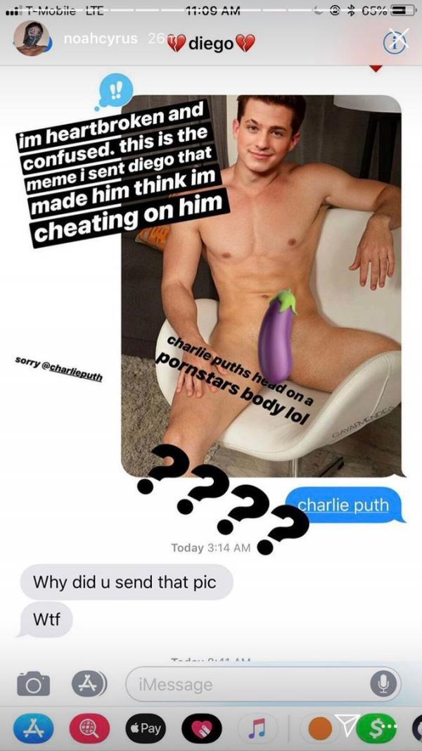 當時諾雅公開了因為自己分享歌手查理普斯(Charlie Puth)的假裸照而惹怒男友 Lil Xan 的訊息對話過程,Lil Xan 則在網路上隔空回應自己不是因為那張裸照而生氣分手,而指控諾雅在外面跟別的男人鬼混導致他怒氣難消。諾雅則一邊曬出自己大哭的心碎模樣,一邊發出了疑似 Lil Xan 身上吻痕的照片,暗示著 Lil Xan 才是那個在外面到處亂來的人。