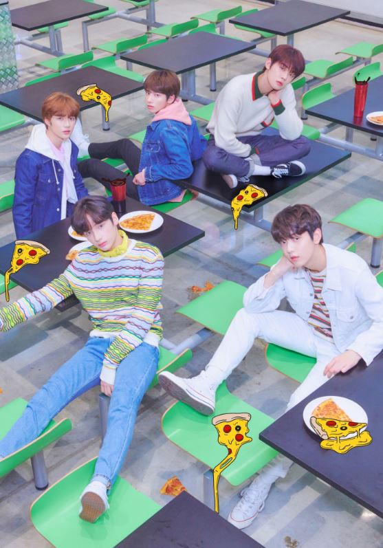 隨著TXT新專輯發行在及,BigHit官方twitter也陸續釋出專輯形象照,由於成員年齡都未滿20歲,團中老么寧凱甚至只有16歲,因此宣傳海報也大打青春風格,其中一張場景就設置成學校教室,另一照片則以戲院為背景拍攝,而5成員也穿著馬卡龍顏色的帽T或是牛仔系列造型,看上去學生味十足。