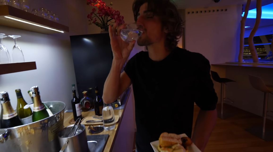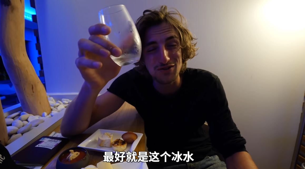影片的末段,「鋼蛋」順利回到了本島陸地,也準備搭乘飛機離開,而在離開前,「鋼蛋」在小島上念茲在茲的便是機場的「自助餐」,一到餐廳「鋼蛋」便夾了許多東西,甚至開始猛灌「冰水」,更直呼「最好就是這個冰水」。