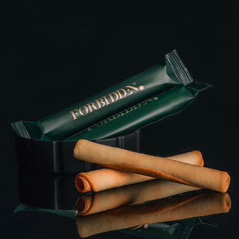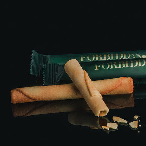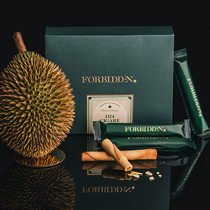 「FORBIDDEN」的首波商品就是在2/20推出的「D24榴槤蛋捲」。特別精選馬來西亞的特色品種D24榴蓮為基底,結合日式雪茄蛋捲的做法,讓「D24榴槤蛋捲」帶有酥脆口感以及淡淡的奶香,不只讓喜愛榴槤的人一口接一口,對原本不喜歡榴蓮的人來說,也是很好的入門榴槤甜點。