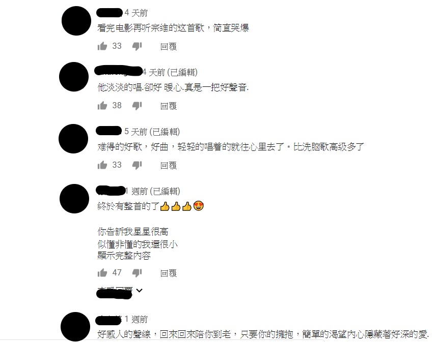 如今事隔六年再次推出新曲,楊宗緯也讓大家再次見到他的實力,讓歌迷大飽耳福,專輯《星》在亞洲新歌排行榜中港澳台排行穩坐第一,贏過第二名的張韶涵新曲《天分》和第三名蕭敬騰的《Haunting Me》,許多歌迷也在網上留言表示「他淡淡的唱卻好,暖心,真是一把好聲音」、「難得的好歌,好曲,輕輕的唱著的就往心裡去了」、「看完電影再聽宗緯的這首歌,簡直哭爆」。