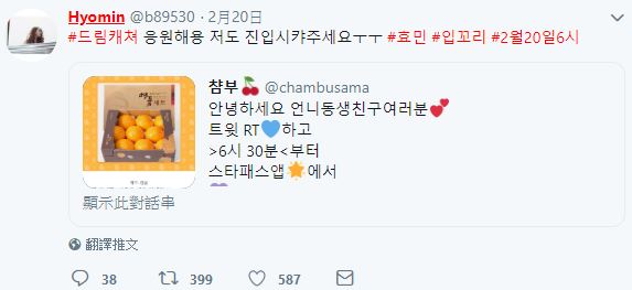 T-ara成員孝敏已經推出兩張個人專輯,20日也以新作品《Allure》回歸,不過似乎因為擔心榜單成績不理想,孝敏陸續在個人Twitter上轉貼不少同期回歸的前輩作品包括Loona本月少女、Dreamcatcher、MONSTA X和ITZY,文中除表達恭喜,也不斷重複喊話外界「請幫忙我快速入榜吧」,讓粉絲看得十分心疼。