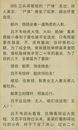 最終大結局僅只以文字帶過李皓鑭、呂不韋下場及卒年,如此草率的結尾讓網友吐槽根本是「大爛尾」,而網上也流傳真正結局的劇本,其實中真正结局是李皓鑭和呂不韋雙雙退隱,並一起遊歷天下,有網友挖出在花絮中曾曝光兩人以年老裝扮,一起同乘小船,但正片並沒有播出過,讓網友懷疑是不是不符合史實,所以才被刪減。