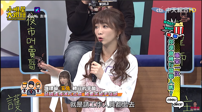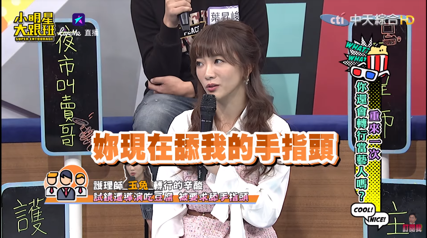 《黑澀會》結束後,玉兔去考了護理師,但天天爆肝工作,甚至累到在公車上暈倒,後來決定回歸演藝圈。起初回到演藝圈她沒有經紀公司,一個人到處尋求面試機會,沒想到卻碰上變態導演。當時玉兔去試鏡,導演先是把所有工作人員都趕出去,只單獨留下導演和玉兔兩個人,還要求她演出調情的戲碼。